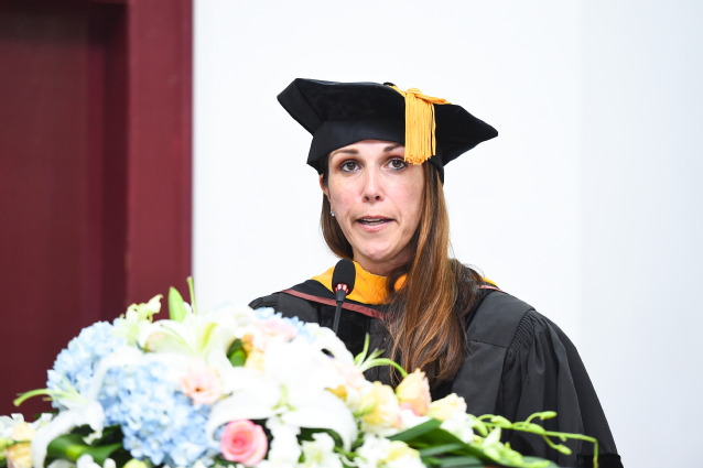 首先,Alicia Alvero教授作毕业致辞。她代表皇后学院向毕业生们表示诚挚的问候,对beat365官方网站领导、老师、家长们对教育的辛勤付出表示感谢。Alicia Alvero教授从500年前孔子提出的成功人士的三个必要条件:智慧、仁慈、勇气出发,讲述成为一个成功人士的必要品质,希望毕业生们成为一个幸福的成功的人。