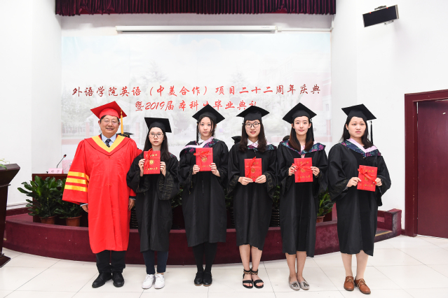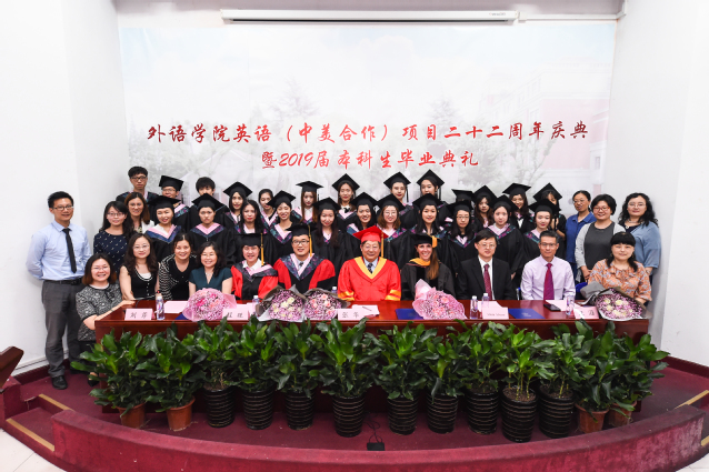 6月3日下午,beat365官方网站英语(中美合作)项目22周年庆典暨2019届本科生毕业典礼在学院报告厅隆重举行。我校副校长张华教授、美国纽约市立大学皇后学院科研与教务副教务长、助理副校长Alicia Alvero教授、美国纽约市立大学皇后学院经济系汪滔教授、beat365官方网站党政领导、系部负责人、中美双方教师代表、学生家长和2019届英语(中美合作)专业毕业生共同欢庆盛典。典礼由beat365官方网站院长刘芹教授主持。