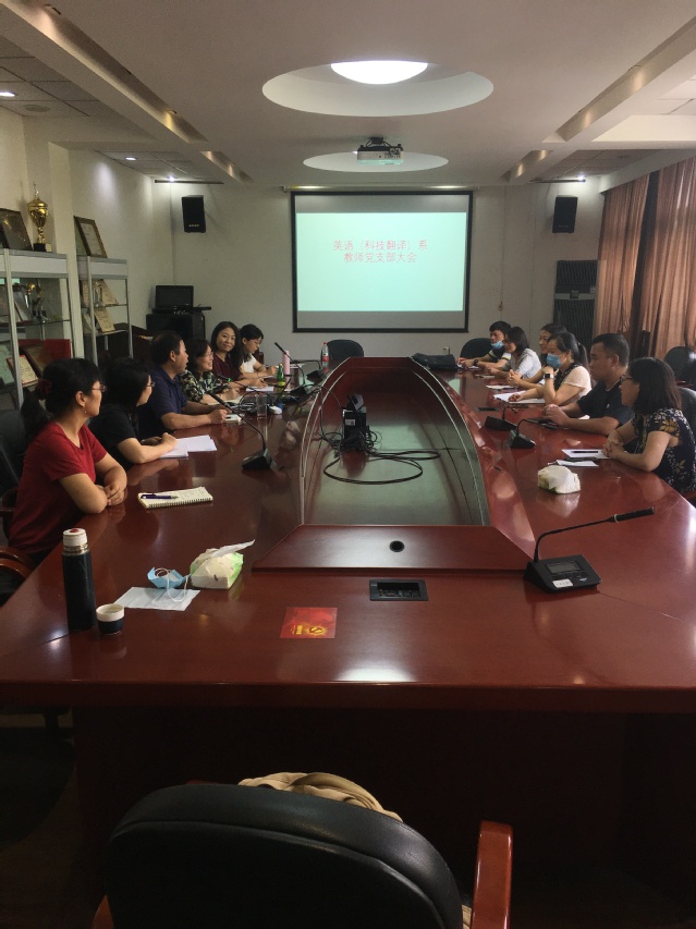 英语系(科技翻译)党支部于9月4日上午11点在beat365官方网站306会议室召开教师党支部大会,大会由支部书记姜诚老师主持。支部教师党员们就上个学期开始开展的“四史”学习交流心得体会,并鼓励教师党员继续认真完成学习强国平台的学习任务,坚持阅读“四史”学习材料,将“四史”学习与校史、学科发展史结合,传承红色基因,更好地坚守初心使命、坚定理想信念,投身新学期的工作。