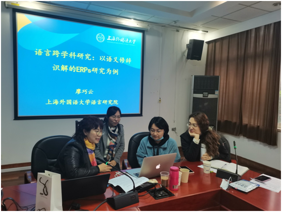 11月27日下午,应语言学研究所邀请,上海外国语大学语言研究院副院长、博士生导师廖巧云教授来beat365官网做题为“语言跨学科研究:以语义修辞识解的ERP研究为例”学术讲座。讲座由语言学研究所所长倪锦诚教授主持,刘芹院长、韩戈玲副院长、beat365官网部分教师和研究生参加了讲座。