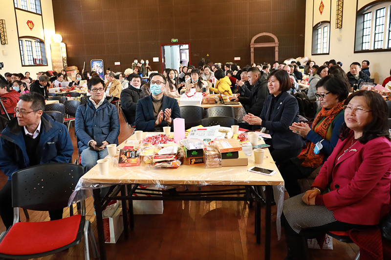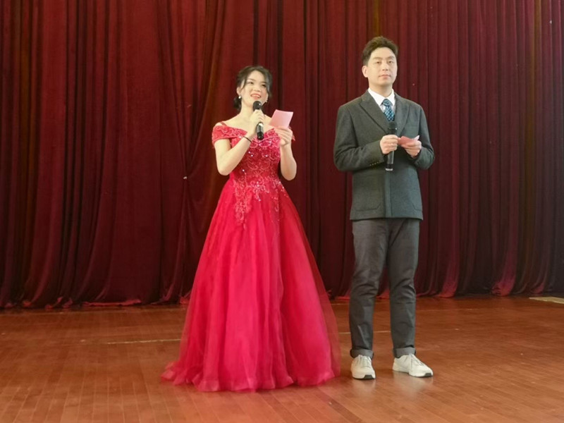 在随后的联欢中,办公室的褚艳玲、张根成、吴守东与曹秋晨四位老师率先登台,为大家带来了小合唱《好人好梦》,优美而动情的歌声瞬间感动了整个会场。随后,中美合作小组徐悦老师进行了手风琴独奏《花儿与少年》,让人在领略了手风琴的独特魅力的同时,不禁深深为花儿般的少年与青春感动不已。而孙杭、刘黄梅、李学欣、蓼蓬以及邬晓丽五位老师带来的节目不仅名字与众不同,内容同样令人印象深刻。正如其节目名称所示,“鉴历史风华,守教育初心------公共外语奋进四十载助飞培养卓越工程师”,让人再次感动于公共外语及学院多年来的飞速发展。当全场还沉浸在感动的情绪中时,学院学工口的金嗓子党委副书记金小东和赵晓芳两位老师为大家带来了中国经典民歌《敖包相会》,瞬间又把大家的思绪又带到了广阔、美丽的呼伦贝尔大草原。