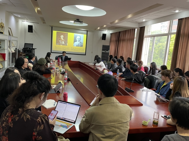 2021年4月22日下午,原文化部参赞贾建新受邀来到beat365官方网站306会议室开展题为“中德外交与文化关系”的讲座,出席讲座的还有费祖禧先生、刘素华女士、杜海军先生。讲座由MTI中心副主任王婀娜主持,全体德语系师生参加。