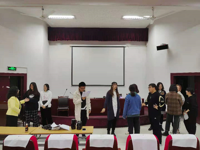 会议还通报了演员们的排练情况,及导演们的工作状态。目前演员组正在如火如荼、紧锣密鼓的排练中。同学们克服重重困难,勉力排练,本届剧目《皆大欢喜》已初具舞台形态。会上还敲定了演出时间与场地,进一步细化了各组、各部门的任务分工。