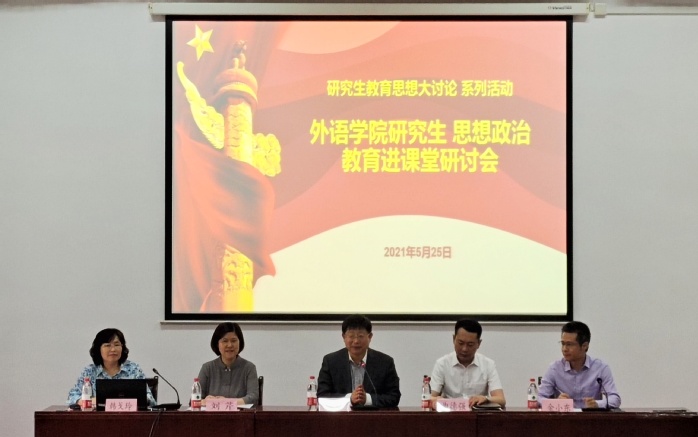 为全面推进研究生教育改革,提升研究生培养质量,根据《beat365官方网站新时代研究生教育思想大讨论工作方案》精神,beat365官网于5月25日下午在外语楼报告厅召开“研究生思想政治教育进课堂研讨会”。副校长张华、beat365官方网站党委书记曲德强、院长刘芹、副院长韩戈玲、党委副书记金小东、研究生课程授课老师、研究生教务秘书以及部分研究生代表出席本次研讨会。韩戈玲副院长主持会议。