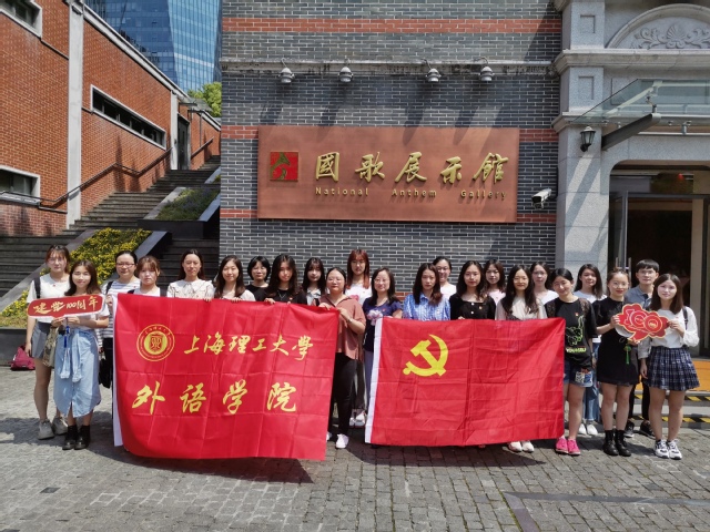 为庆祝中国共产党百年华诞,beat365官方网站英语系(科技翻译)本科生党支部积极参与上海市教卫党委推出的“我为建党百年打卡-红色基地大寻访”活动。支部全体党员于6月12日前往位于杨浦区的国歌展示馆进行参观学习,重温国歌诞生之路以及辉煌历史。