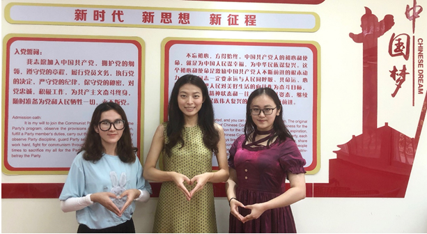 从左到右分别为海热姑·阿布力米提、指导老师张豪若、环筱语