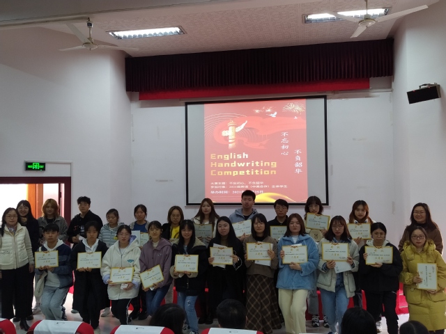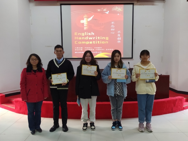 颁奖仪式上,英语系(中美合作)主任黄芳为荣获一等奖的同学颁奖,副主任贾晓云、祁小雯和沈谢天为荣获二等奖的同学颁奖,评委老师郭霞、胡漫及吕馨桐为荣获三等奖的同学们颁奖。颁奖环节结束后,黄芳主任为本届书写大赛致闭幕词。她勉励全体获奖同学以大学生涯的首度获奖为契机,立志高远、发奋学习,争取在更高级别的学科竞赛平台上展示个人风采,为学校、学院和系部争取更大的荣誉。
