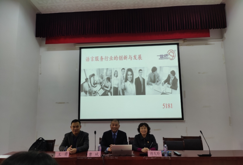 曹董事长请同学们现场做英译汉翻译练习:“No problem too large. No business too small.”同学们开动脑筋,才思泉涌,译文各有特色。而曹董事长译文“没有解决不了的大问题,没有不做的小生意。”让大家很受启发,认识到今后不论遇到什么困难,都不要退缩,因为没有什么问题是解决不了的,任何小细节都需要留心,尽量把每一件小事做到完美。最后,上海世语翻译公司的两位上海大学实习生分享了各自的翻译实践经验,为同学们提出几点建议:一是坚强翻译专业技能训练,考出翻译资格证书;二是提高翻译项目综合技能,如文字编辑能力、项目管理能力、视频剪辑技能、数据分析能力等;三是多参加其他各种竞赛和志愿者活动,以赛促学;四是在实习过程中要尽快适应身份转化,在工作中多尝试,发现自己的优势,要根据自己的兴趣和技能理性选择实习工作,还要主动出击,利用求职APP进行筛选,同时要重视导师布置的翻译项目。