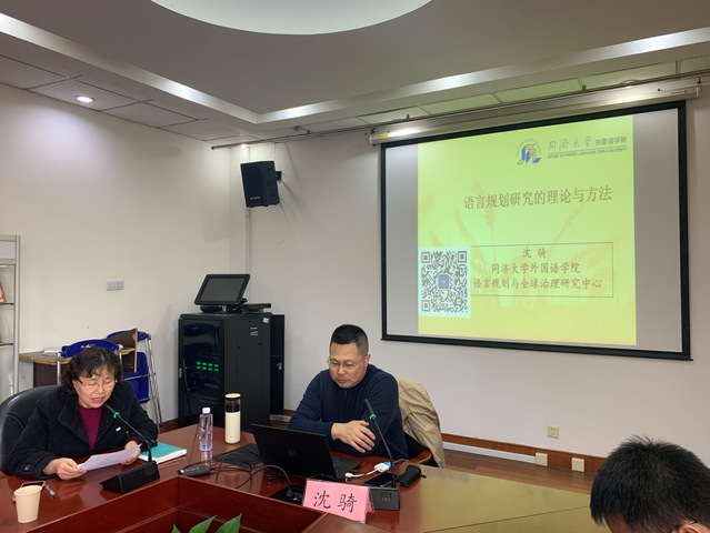 11月22日下午,同济大学博士生导师、语言规划与全球治理研究中心主任、上海市“曙光学者”沈骑教授应邀来beat365官网,为研究生作题为“语言规划研究的理论与方法”的学术讲座。本次讲座在beat365官方网站306会议室举行,由副院长韩戈玲教授主持。