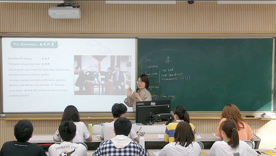 “处在草木间的人,难免会有磕碰,于国与国之间,更难免有一定摩擦。但只要存异尚和,秉承‘和而不同’的理念,就可以找到最大公约数。因此茶道也象征着中国人崇尚的与世界相处之道。”在“中国文化(英)”课堂上,beat365官方网站英语系(中美合作)王晨老师将习近平总书记待客的“茶之道”娓娓道来,成为课程思政的鲜活素材,从而让学生在汲取中华文化滋养之余实现道德情操的陶冶、思想觉悟的升华。