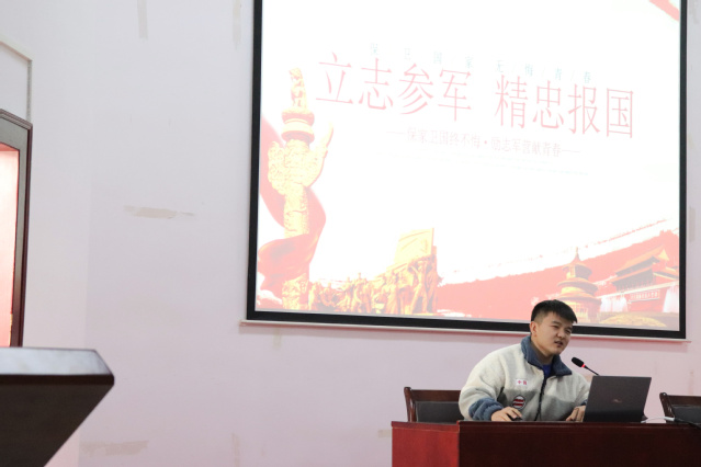 首先,金老师从国家和个人的层面向学生们讲解了入伍的重要性。他谈到,应征入伍是响应国家号召,保卫国家安全,维护祖国统一,为祖国的国防事业奉献青春力量。对于个人来说,这也是一次改变人生轨迹的机会,应征入伍可以锻炼自己的思想和意志,部队的训练和培养也是重要的,实践证明应征入伍有利于学生的发展,希望同学们积极报名,不负青春,筑梦军营,报效祖国。