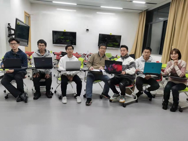 詹其文教授(正中)、李学欣老师(右一)与学生们