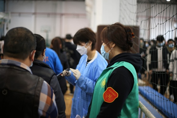 3月14日,由于当天检测点位较少,核酸任务繁重,核酸队伍从早上八点半一直排到晚上七点半。祁钰雯同学从中午12:30开始接班,一直坚守自己的岗位,和其他志愿者一同在临时检测点前引导同学,反复提醒同学们“提前打开健康云二维码并将手机亮度调至最大”,直到当天晚上七点最后一位同学完成核酸检测。遇到一些年纪较大的教职工及其家属前来检测时,她耐心帮助他们登记申领健康云二维码,顺利完成检测。