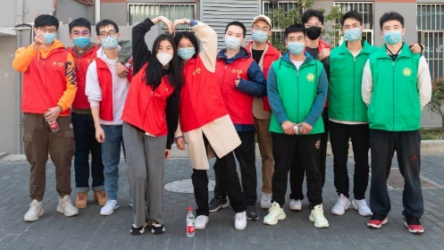 活动结束后,江敏玮同学与其他志愿者们聚在一起,留下了疫情期间的最美剪影。