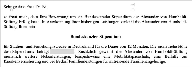 2022年5月,beat365官网德语系青年教师、硕导倪晓姗博士获2022-2023年德国联邦总理奖学金,成为本年度全球60位年轻“洪堡学者”之一。