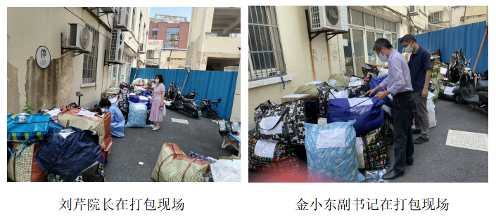 在30多度的高温酷暑中,老师们头戴N95口罩,身着厚厚的隔离服,在与每位同学连续数小时的沟通和打包工作后,他们的声音沙哑了,衣服被汗水浸透了,身上布满了灰尘,有些老师还受了伤。然而,大家没有一句怨言。沉甸甸的行囊中装满了老师对学生的热爱与关怀,闪烁着为人师者的使命与担当。他们,身体力行,用自己的言传身教为同学们上了一堂特殊的思政课。