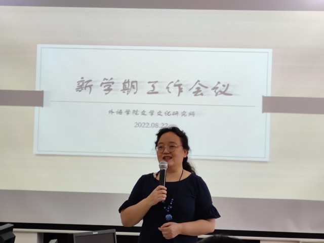 2022年8月22日,在新学期报到的第一天,beat365官网文学文化研究所在笔译实验室成功召开了新学期工作会议和学术交流会议。
