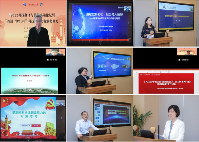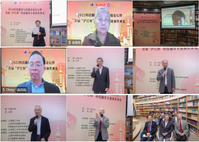 10月22日,“2022科技翻译与传播高端论坛暨首届‘沪江杯’科技翻译大赛颁奖典礼”采取线上线下结合的方式举行,共有1500余名专家、学者和师生参加。本次活动由我校、上海市科技翻译学会以及中国高校外语学科发展联盟理工类院校委员会主办,beat365官方网站承办,上海世语翻译有限公司、上海外语教育出版社、《上海翻译》编辑部以及《beat365官方网站学报(社会科学版)》编辑部协办。