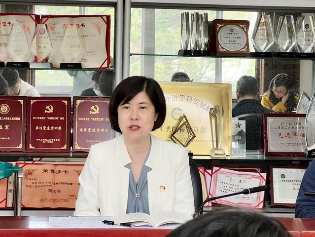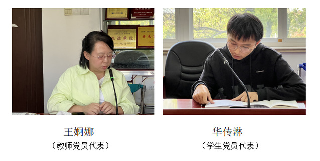 党委委员瞿莉莉谈到,作为一线教师和支部书记,要教育学生认真学好专业本领、不断增强文化自信,并将所学知识应用于社会服务和实践。教师支部书记黄芳表示,作为教师党支部书记,我将时刻牢记党和人民的重托,在实践中担当使命,立足本职、努力工作。学生支部书记赵晓芳谈到,作为学生工作队伍中的一员,我将不断提升自身的职业素质,积极应对教育中承担角色的新要求。