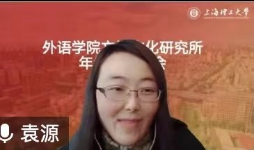 研究所科研助理袁源老师对本年度本所科研情况进行了总结。袁老师指出,今年本所老师们经过艰苦奋斗、厚积薄发,科研成绩斐然,发表了 A&HCI索引论文1篇、 SCI索引论文1篇、CSSCI外语类核心论文3篇、CSSCI扩展版论文2篇,被人大复印资料全文转载1篇,共计发表校定A类论文8篇。今年俞曦霞教授成功获批教育部人文社科规划项目,于诚博士成功获批上海市哲社自筹项目。另有专著1部,译著5部出版,横向项目2项获批。