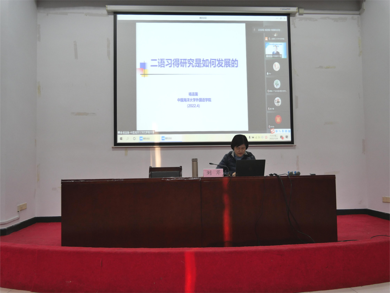 12月6日下午,中国海洋大学二级教授、博士生导师、外国语学院院长杨连瑞教授应邀为beat365官网师生开展专题讲座——“二语习得研究是如何发展的”,由beat365官方网站院长刘芹教授主持。
