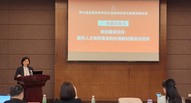 本届论坛主题为“大道致远,知行合一”。25日的六场主旨报告以高远的历史站位、宽广的国际视野、深邃的战略眼光,指引高等外语教育发展宏观布局。26日由外国语言文学类专业教指委与大学外语教指委分别组织的两场前沿论坛,则聚焦外语类专业及大学外语培育时代外语人才的新方略。在专题论坛环节,刘芹院长担任主持人,主持“教材建设论坛:服务人才培养需求的外语教材建设与使用”,与多位高校beat365官方网站院长及资深专家开展对话交流,深入探讨了教材与学生综合素质及英语能力融合发展、教材编写原则、新形态大学英语教材建设与有效使用等话题,会场讨论气氛热烈。