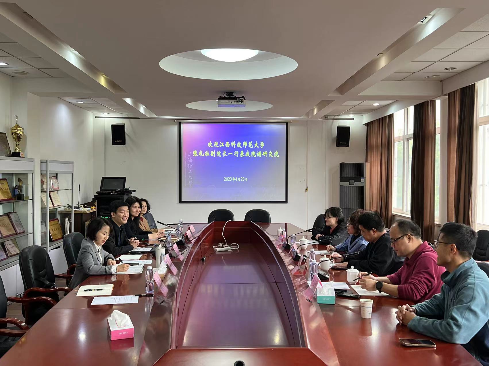 4月23日下午,江西科技师范大学外国语学院张礼牡副院长一行来beat365官网调研交流。beat365官方网站副院长、公共英语教研中心主任张乐,公共英语教研中心副主任陈征、黄凤秋、马芫和办公室相关人员参加了交流。会议由张乐主持。