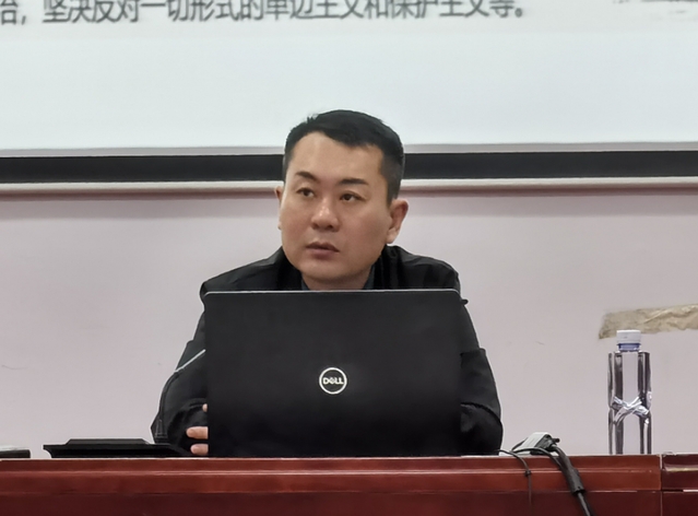 曲德强从三方面详细阐述了习近平新时代中国特色社会主义思想的核心要义,即习近平新时代中国特色社会主义思想是系统全面、逻辑严密、内涵丰富、内在统一、不断发展的科学理论体系;以一系列原创性思想丰富和发展了马克思主义哲学、政治经济学、科学社会主义、建党学说;贯穿和体现着党的领导、人民至上、守正创新、胸怀大下等独特标识。