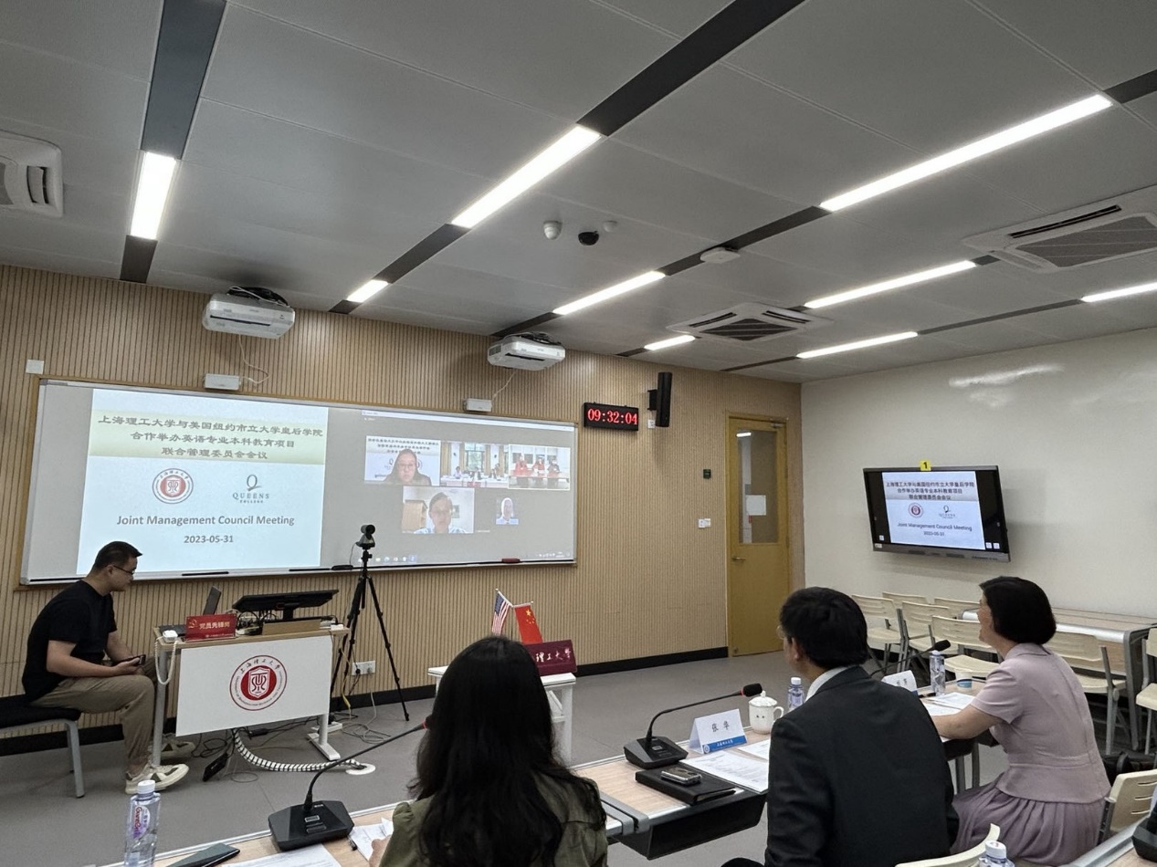 5月31日上午,beat365官方网站中外合作办学项目—beat365官方网站与美国纽约市立大学皇后学院合作举办的英语专业本科教育项目联合管理委员会会议在学校智慧教室召开。此次管委会会议采取线上视频会议的方式。校长丁晓东发来致辞,副校长张华主持会议,美国纽约市立大学皇后学院校长Frank H. Wu、副校长兼代理教务长Patricia Price、艺术与人文学院院长William McClure、国际交流办公室执行主任Patrick O’Connell、项目外方负责人Tao Wang,beat365官方网站院长刘芹,国际交流处和beat365官方网站相关负责人参加会议。