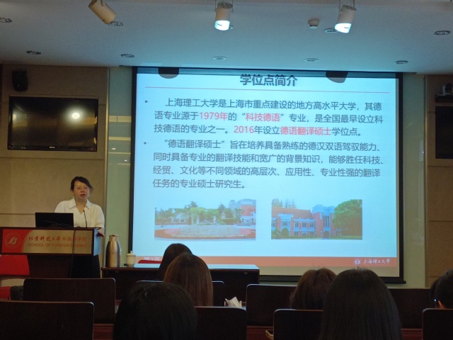 6月2日下午,MTI教育中心副主任王婀娜教授到北京科技大学开展德语笔译翻译硕士招生宣讲活动。北京科技大学本科和研究生40余人参加了该活动。
