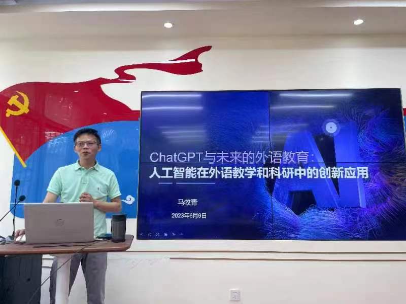 6月9日下午,上海第二工业大学外国语学院教师、硕士生导师马牧青博士应邀为英语系(中美合作)教师开展专题学术讲座——“ChatGPT与未来的外语教育:人工智能在外语教学和科研中的创新应用”,讲座由英语系(中美合作)主任黄芳老师主持。