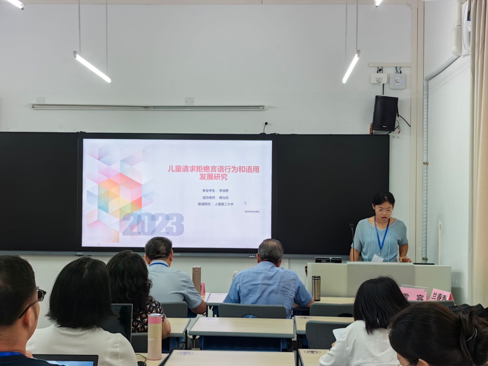 beat365官网韩戈玲教授带两名2021级研究生参会,并指导研究生宣读研究论文。李淑君同学的论文“儿童请求拒绝言语行为发展研究”探讨学龄前儿童拒绝言语行为的交际效果和语用能力发展过程,陈慧同学的论文“汉语儿童英语语用借用和双语能力研究”探究汉语儿童英语语用借用的语言形式与语用功能,阐释儿童双语语用能力发展模式。两位研究生在读期间首次参加学术会议,不仅增长学识,开拓学术视野,更意识到“东学西渐”的战略意义。此外,本次会议上,beat365官网韩戈玲教授当选为第五届中国逻辑学会语用学专业委员会理事,她将与同仁们共同努力,继续推动我国语用学的发展。