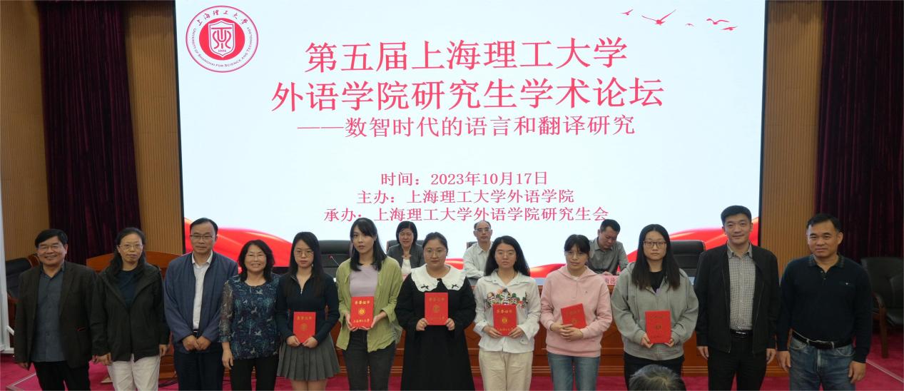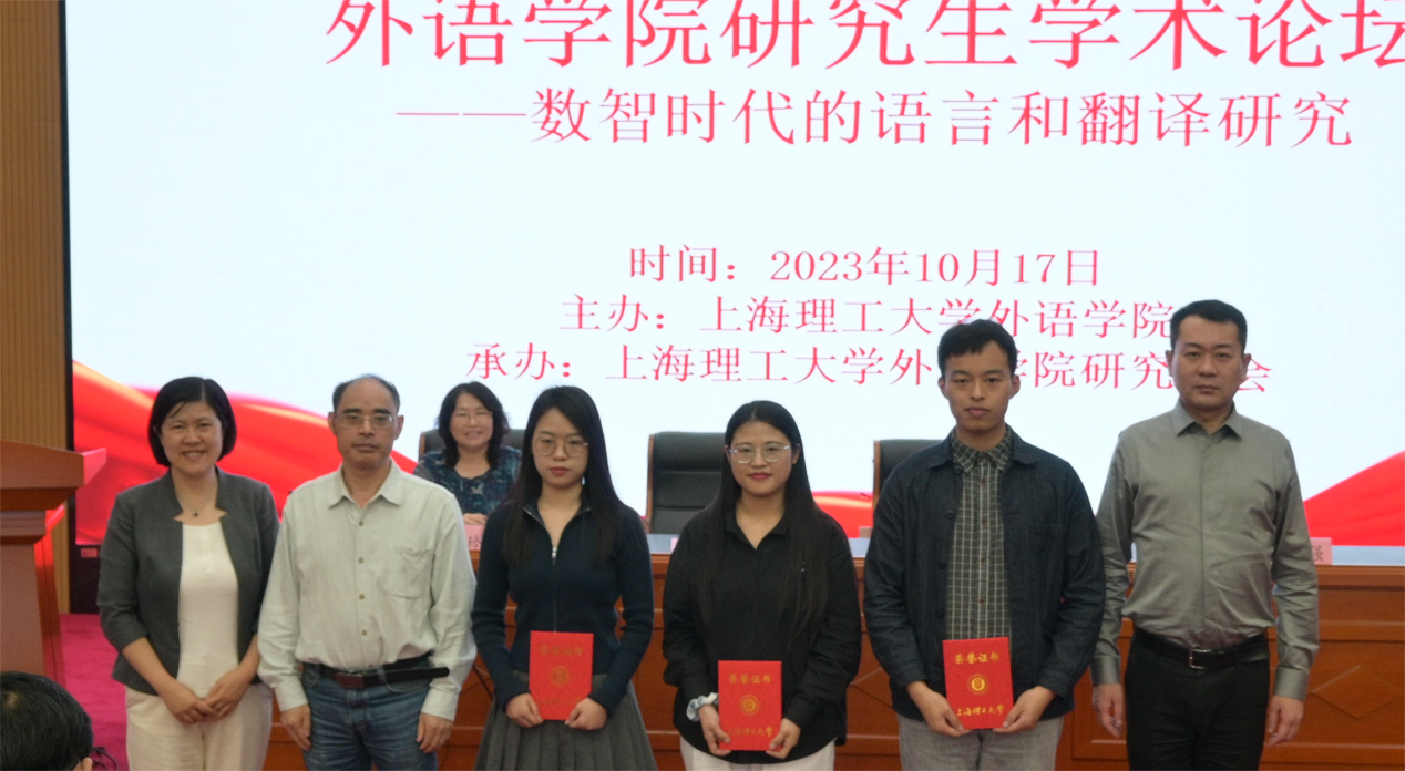 本次论坛共收到稿件31篇,经组委会评审,录用29篇。共设三个专题分论坛:语言学、文学和翻译学研究。与会研究生在分论坛进行现场学术交流,校内外专家对论文进行点评,并提出修改建议。经评审委员会评议,共评选出13篇优秀论文,其中一等奖3篇,二、三等奖各5篇。上海大学外国语学院博士生导师邓志勇教授、beat365官网党委书记曲德强、院长刘芹、副院长韩戈玲、副院长张乐、评委王勇、倪锦诚、高文成、张顺生、金文宁、王影君老师为获奖同学颁奖。