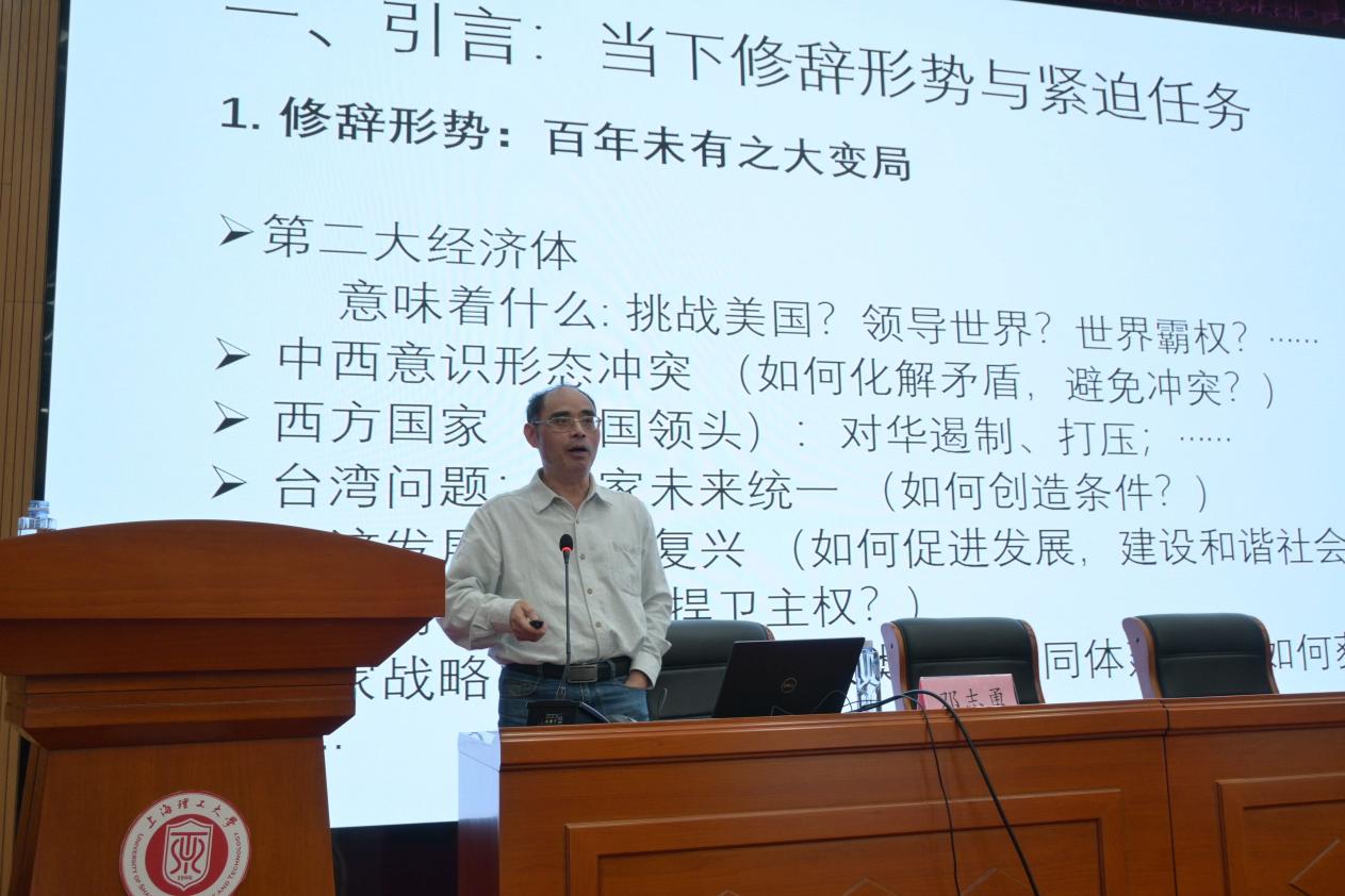 令人振奋的颁奖仪式结束后,邓教授为同学们做题为“本质的时间化:修辞策略及当下意义”的学术专题讲座。邓教授着眼当下修辞的形势与紧迫任务,系统论述了“本质的时间化”的基本概念及哲学基础、“本质的时间化”与诱发合作、“本质的时间化”在理论和实践上对当下的修辞任务的重要启示,引经据典进行阐释。邓教授生动详明的讲座内容和治学严谨的研究方法给在座师生很大的启发。beat365官网高文成教授就“隐喻是对本质的时间化还是对本质的跨越化”的问题与邓教授进行深入交流。邓教授深入浅出的讲解使得在场学生获益匪浅。