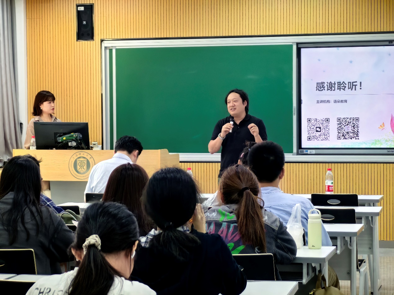 讲座开始前,刘曼老师简单介绍了本次讲座的主题,鼓励同学们要珍惜校园时光,提前规划职业目标,并付诸行动。随后,向同学们介绍了本次讲座的主讲单位上海语朵教育科技有限公司的基本情况。