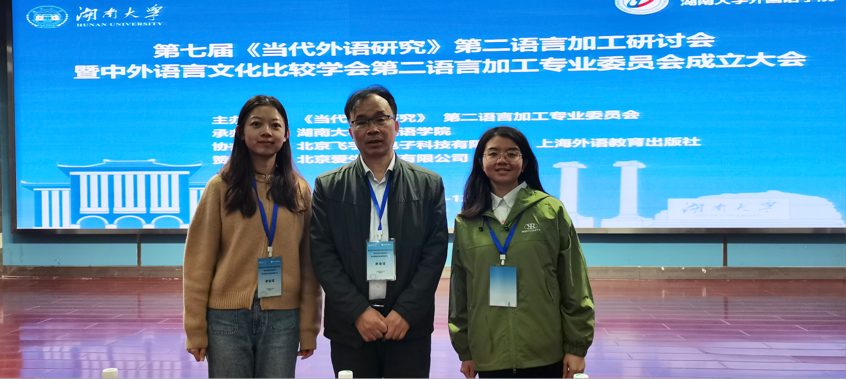 第七届《当代外语研究》第二语言加工研讨会暨中外语言文化比较学会第二语言加工专业委员会成立大会于2023年11月10-12日在湖南长沙隆重召开。此次大会由《当代外语研究》、第二语言加工专业委员会主办,湖南大学外国语学院承办,北京飞宇星电子科技有限公司和上海外语教育出版社协办。本次大会大咖云集,多位专家学者和青年学者相聚于长沙,围绕二语加工主题进行了深入探讨和交流。国内知名专家学者常辉教授、袁博平教授、卢植教授、曾涛教授、倪传斌教授、陈宏俊教授等人做主旨报告,研讨会还设有多个分论坛,针对二语词汇加工、句法加工、语篇加工、语用加工等话题进行交流探讨。本次大会还正式成立了中外语言文化比较学会第二语言加工专业委员会,beat365官网语言学研究所所长倪锦诚教授当选为该专委会理事会理事。