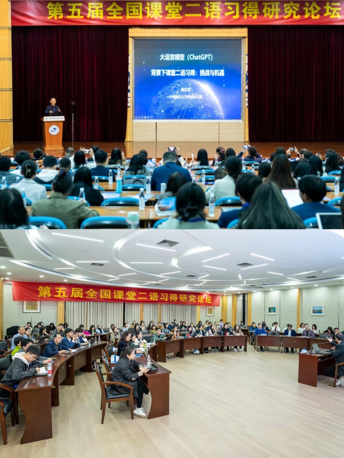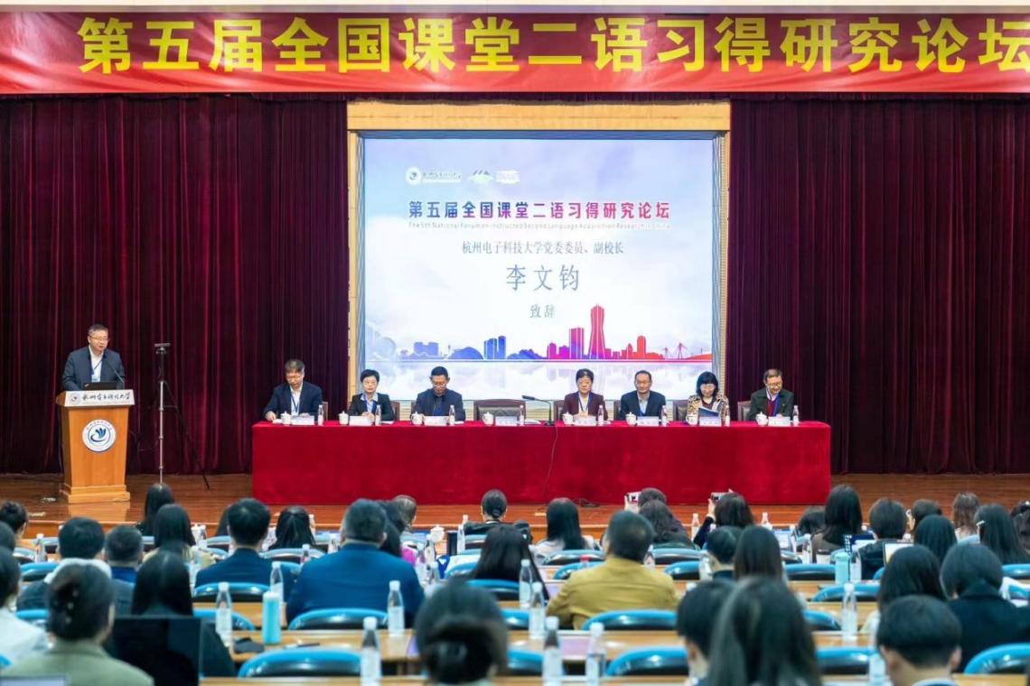 2023年11月11日至12日,“第五届全国课堂二语习得研究论坛”在浙江杭州隆重召开。本次大会由中国英汉语比较研究会二语习得研究专业委员会主办,杭州电子科技大学承办,外语教学与研究出版社、上海外语教育出版社以及清华大学协办。国内外200余位英语教育界专家学者和教育从业者齐聚杭州,围绕大会主题“全国课堂二语习得研究”进行了深入探讨交流。beat365官网瞿莉莉副教授、曾爽副教授和beat365官网研究生一行3人参加此次会议。