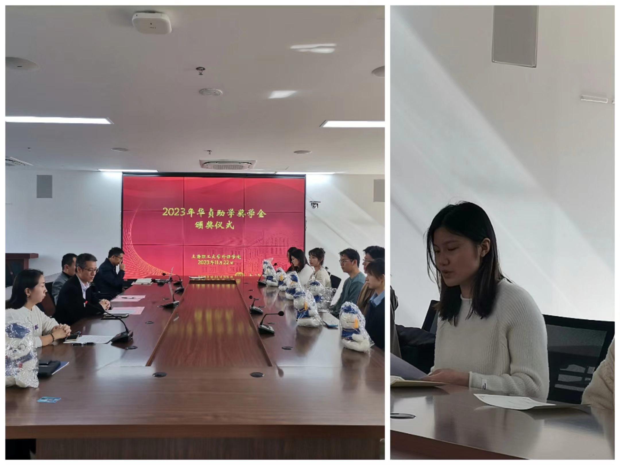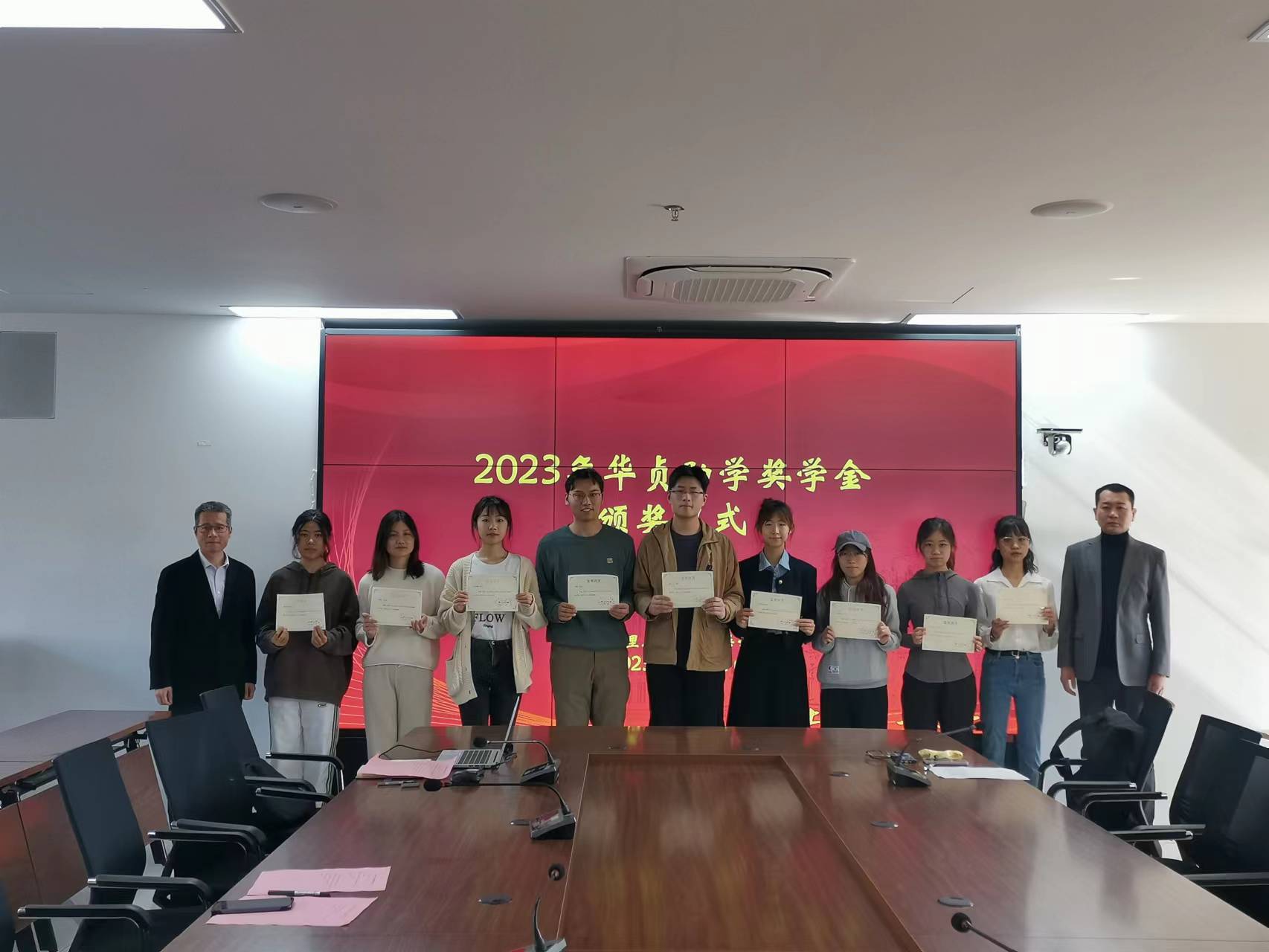beat365官方网站一年一度的华贞助学奖学金评选工作已顺利完成。华贞助学奖学金由beat365官方网站已故知名教授戴炜华先生于2010年设立,旨在奖励品学兼优的beat365官方网站学生,每年评出十名获奖学金,每人颁发奖学金一千元,至今已是第十三年评选。今年共收到三十七名同学的申请材料,经评审委员会认真讨论、层层选拔,评选出叶伟等十位得奖学生。2023年11月22日,beat365官方网站举行了颁奖仪式,学院党委书记曲德强老师、副书记金小东老师、得奖学生和部分辅导员代表出席颁奖仪式,颁奖仪式由辅导员何伟琴老师主持。金小东副书记向在座学生介绍了华贞助学奖学金的设立经过并宣布得奖名单,曲德强书记和金小东副书记为得奖同学颁发荣誉证书,随后与大家合影留念。22级研究生刘瑞代表得奖学生发言,她对学院表示感谢,对华贞助学奖学金的创立人戴炜华教授表示由衷的敬意与深切的怀念,表示一定会秉承华贞助学奖学金的宗旨,关心热爱集体、勇攀学术高峰,做一名优秀的上理外院人。