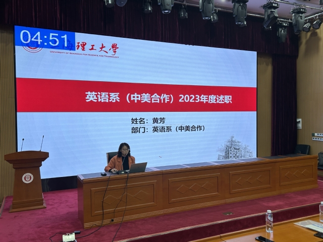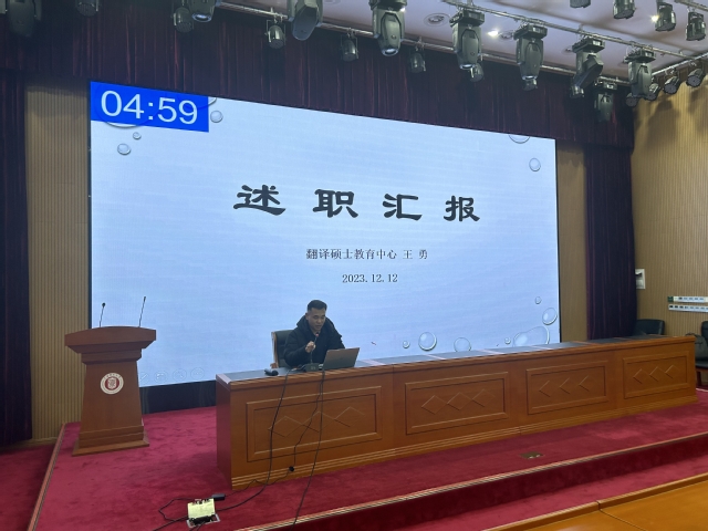 副书记金小东就学生党建、思政教育和学生就业等进行了汇报,通过积极引导、攻坚克难,实现了全员、全过程、合力推动毕业生就业,较去年取得了一定的增长。校友捐赠工作超额完成了学校指标。副院长韩戈玲对岗位职责、研究生人才培养等工作的业绩与创新进行了汇报,着重汇报了人才培养平台品牌建设、竞赛获奖和“沪江杯”翻译大赛等情况。副院长张乐围绕分管工作,汇报了学院迎评促建、“大思政课”、课程建设、学科竞赛、创新创业和大英教学改革等方面取得的多项突破性成绩。