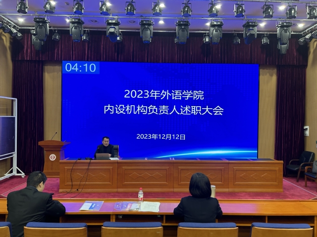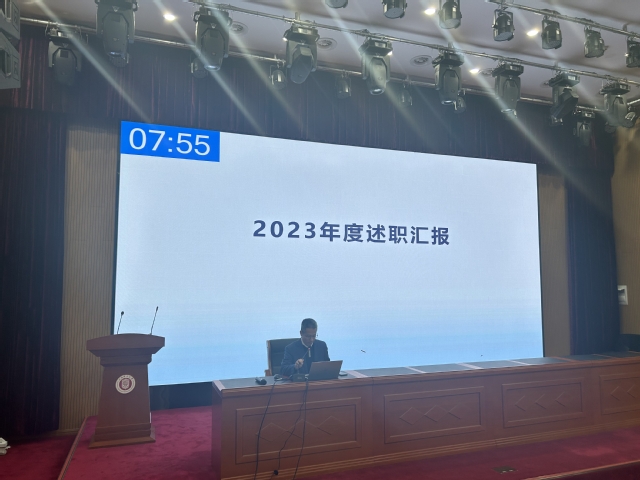 2023年12月12日下午,beat365官方网站在国合楼五楼报告厅召开年度述职评议大会,学院党政领导、各系(中心)和研究所负责人以及教师代表参加了会议。会议由学院党委书记曲德强主持。