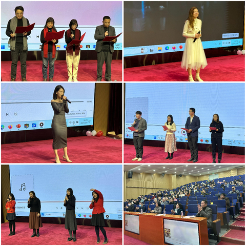 文艺表演环节,各系部的老师们展现了他们精心准备的节目,包括歌唱、舞蹈、魔术、朗诵等,充分展现了他们扎实的语言功底和艺术才华;丰富多彩的互动游戏将活动推向了高潮,现场欢声笑语,气氛热烈。联欢活动在喜气祥和的氛围中圆满结束。