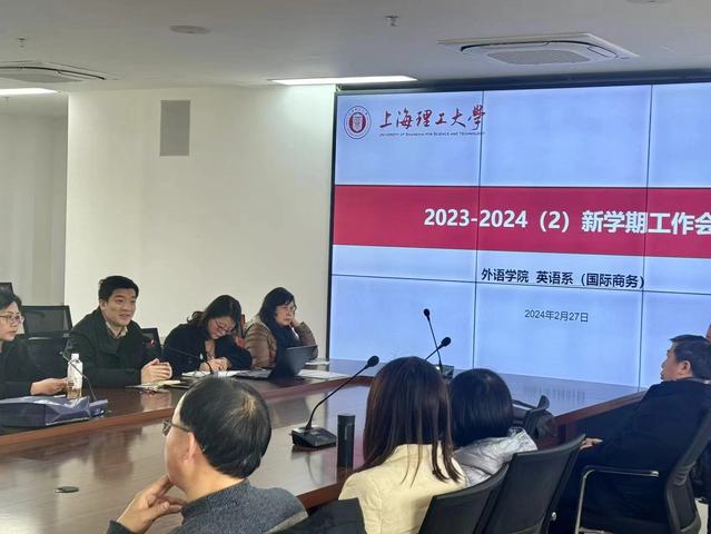 2月27日中午,英语系(中美合作)在国合楼407会议室召开2023-2024学年第二学期首次系部会议。本次会议由系主任黄芳老师主持,张乐副院长莅临指导,英语系(中美合作)全体教师出席。