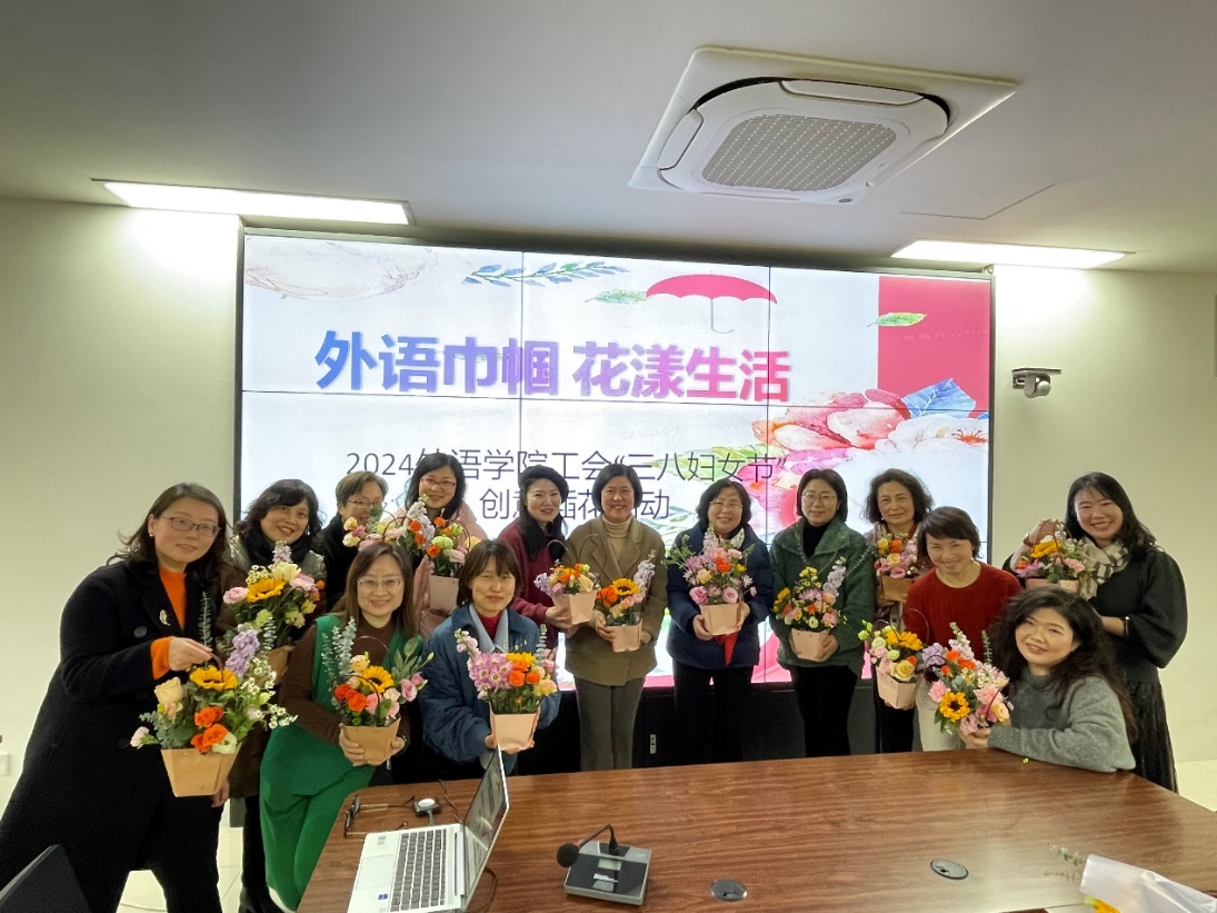 在节日前夕,工会还精心组织了 “外语巾帼 花漾生活” 主题创意插花活动。大家用独特的审美和灵巧的双手,创作了送给自己的节日礼物。