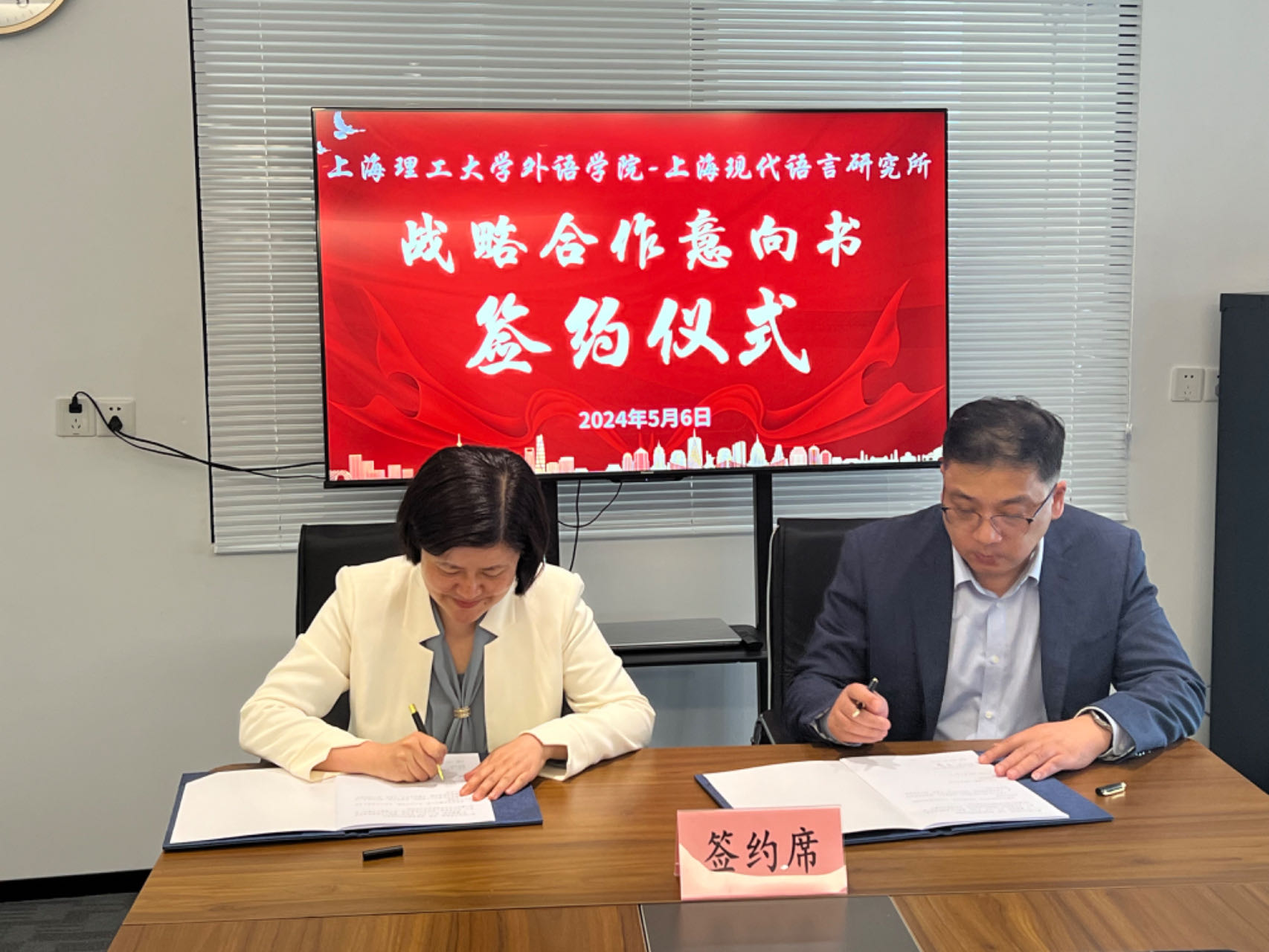 5月6日下午,beat365官网领导受邀至上海现代语言研究所参加《全面战略合作伙伴意向书》签约仪式。党委书记曲德强、院长刘芹、副院长韩戈玲和党委副书记金小东;上海现代语言研究所所长王勇、常务副所长戴健、综合办公室负责人樊华艳、翻译部负责人公雪出席了本次仪式。