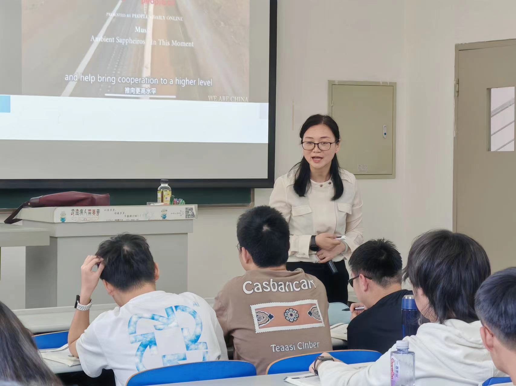 教学过程中,学生在掌握“合作”相关基础知识的基础上,追随老师的提问完成了一场思维探索游戏。通过分组学习模式,深刻理解了语言学习中沟通、合作的重要性。更重要的是,课程拓展了学生对“一带一路”倡议中“合作共赢”理念的认识,为他们讲好中国对外合作的故事奠定了知识基础。