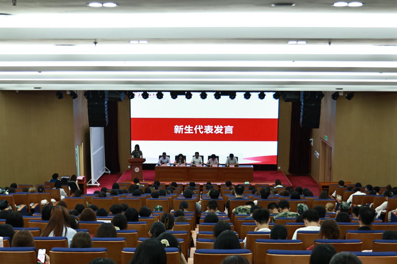 本科新生代表邓元妍和研究生新生代表康晓彤分别上台发言,他们表达了对未来学习生活的憧憬与期待,同时也展现了beat365官方网站学子积极向上、敢于追梦的精神风貌。