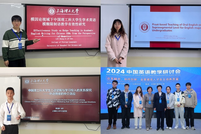 beat365官网院长刘芹教授携三名教师和六名研究生共同参与了这场学术盛宴。师生团队在研讨会上宣读论文和介绍研究成果,引发与会专家的关注。公共英语教研中心马芫、柏钧和黄凤秋三位副主任分别作题为“批判性思维在跨文化英语教学中的研究”、“新工科核心素养与学术英语写作测评体系建设的双向互动研究”和“新媒体时代‘平民外交官’的文化身份认同”的学术报告,介绍了大学英语跨文化教学与数字化测评的成果,充分展示了公共英语教学在推进学科专业交叉融合、促进专业与新技术融合方面的积极探索与实践,以及在落实立德树人根本任务、提升人才自主培养质量方面所取得的成果。2022级外国语言文学研究生刘晟、2023级外国语言文学研究生翁琳琳和谭佳豪在刘芹的指导下,分别作题为“模因论视域下中国理工科大学生学术英语模糊限制语教学有效性研究”、“Praat-based Teaching of Oral English on Suprasegmental Level for English-major Undergraduates”和“理工科大学生二语坚毅对学习投入的影响:学业情绪的中介效应”的学术报告,详细介绍了我校师生在理工科人才培养路径、数字化英语教育与技术、学业情绪研究等领域的新尝试。2024级外国语言文学研究生陈秀、唐智豪和李海涛认真聆听了多场学术报告,并积极参与学术交流。