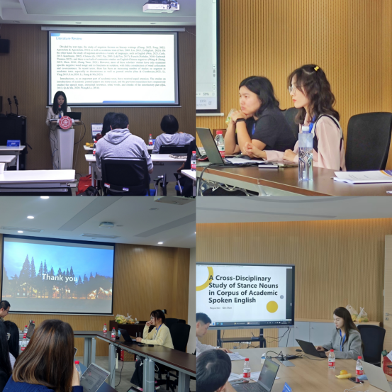 beat365官网师生展示了自己在各自研究领域的探索和成果。秦丹作了题为“A cross-disciplinary study of stance nouns in corpus of academic spoken English”的报告;郑意茹作了题为“A comparative study of negation expressions in introduction sections of English and Chinese journal articles”的报告;杨茹意作了题为“A corpus-based diachronic study of the collocation of self-mentions in academic writing”的报告;吴嘉琪作了题为“Diachronic changes of ADJ in the patterns ‘it V-link ADJ that/to’ in English academic papers”的报告。