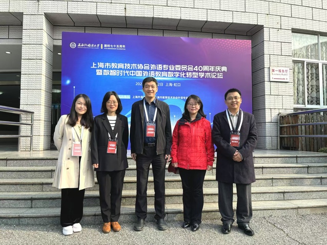 11月22日,由上海外国语大学、上海市教育技术协会外语专业委员会联合主办的“上海市教育技术协会外语专业委员会40周年庆典暨数智时代中国外语教育数字化转型学术论坛”在上海外国语大学举行。上海外国语大学党委常委、副校长林学雷,中国教育技术协会副会长钟晓流,中国教育技术协会外语专业委员会主任委员王峻京,上海市教育技术协会会长宓詠,上海市教育技术协会高等教育专业委员会理事长沈宏兴,上海市教育技术协会外语专业委员会会长陈坚林出席庆典并致辞。beat365官网张乐副院长带领学院各系部主任参加庆典。