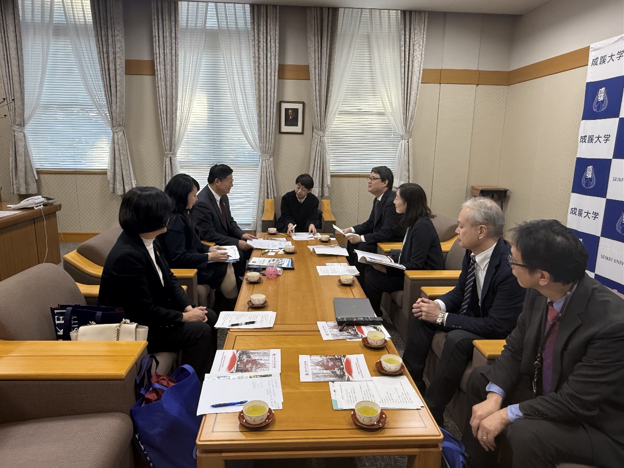 11月28日,我校代表团应邀回访成蹊大学(Seikei University),成蹊大学校长森雄一(Yuichi Mori)等热情接待了代表团。9月24日,该校国际教育中心国际课课长福田嘉雄(Yoshio Fukuda)访问我校,双方初步交换友好合作意向。成蹊大学与我校有着同样悠久的历史和相似的建筑风格,校名取自司马迁的“桃李不言,下自成蹊。”。出席此次会谈的日方人员有:国际教育中心长小林惠(Megumi Kobayashi)、福田嘉雄(Yoshio Fukuda)、法学系教授李林静、执行课长松尾隆(Takashi Matsuo)和主任鈴木悠子(Yuko Suzuki)。会谈期间,代表团结合我校具体情况就文理融合等潜在合作领域的联合培养、学分互换等方面的合作进行了深入交流,一致达成了合作共识。代表团还参观了成蹊大学的校园、图书馆、留学生宿舍,并对该校的国际合作交流等方面进行了调研。